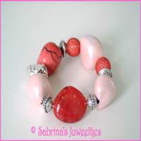 zijn geregen op elastiek tot een armband.