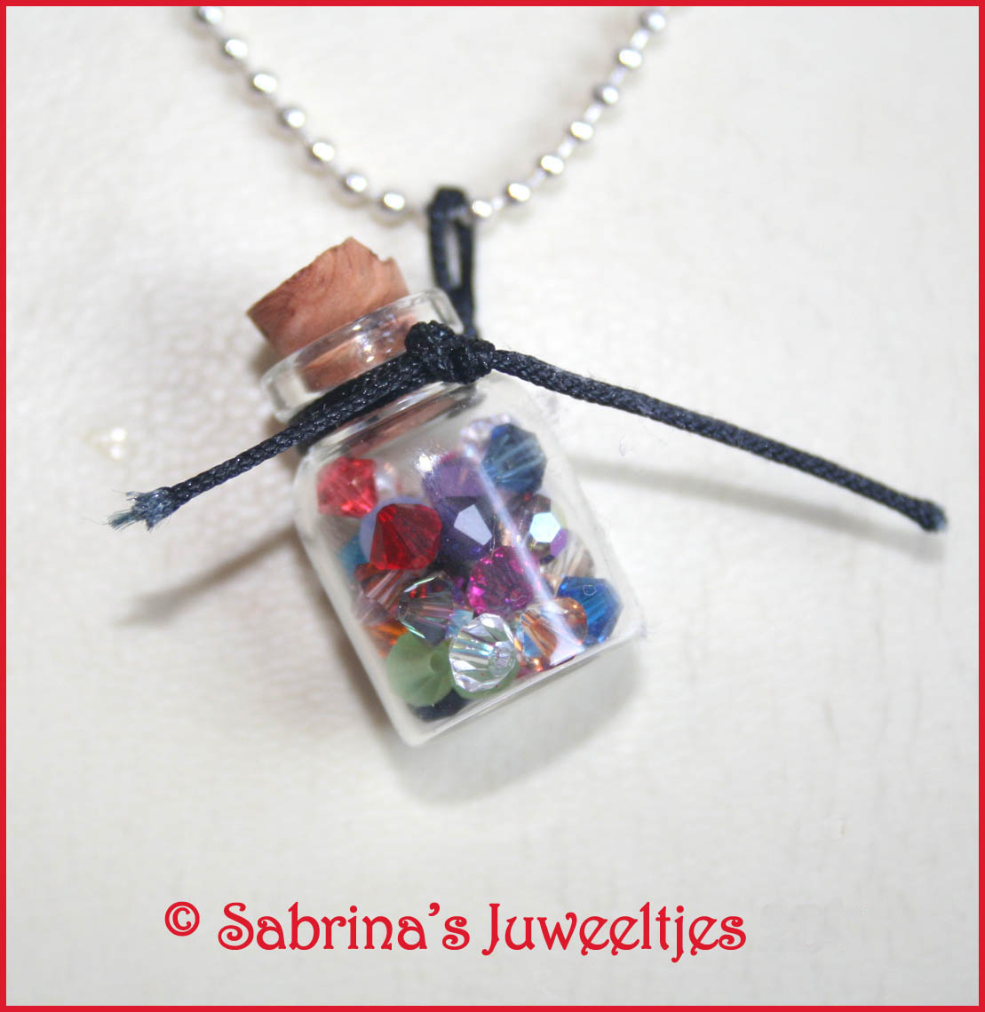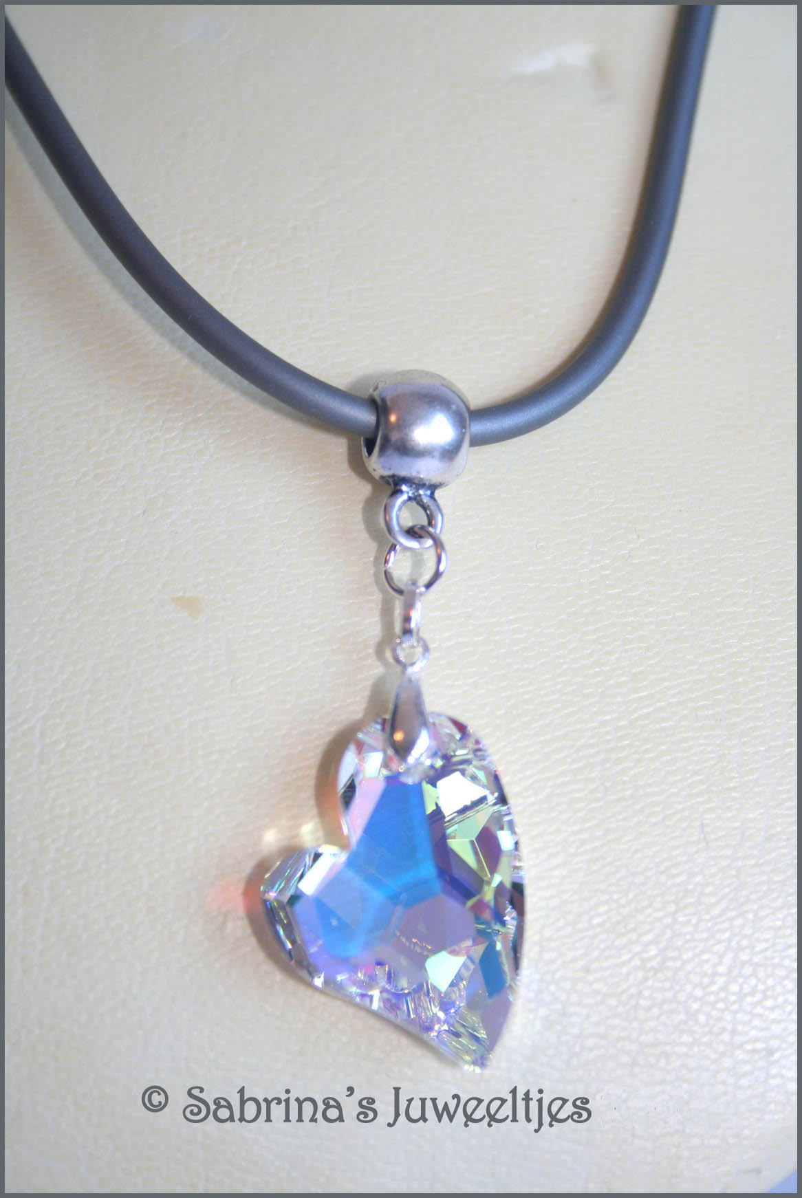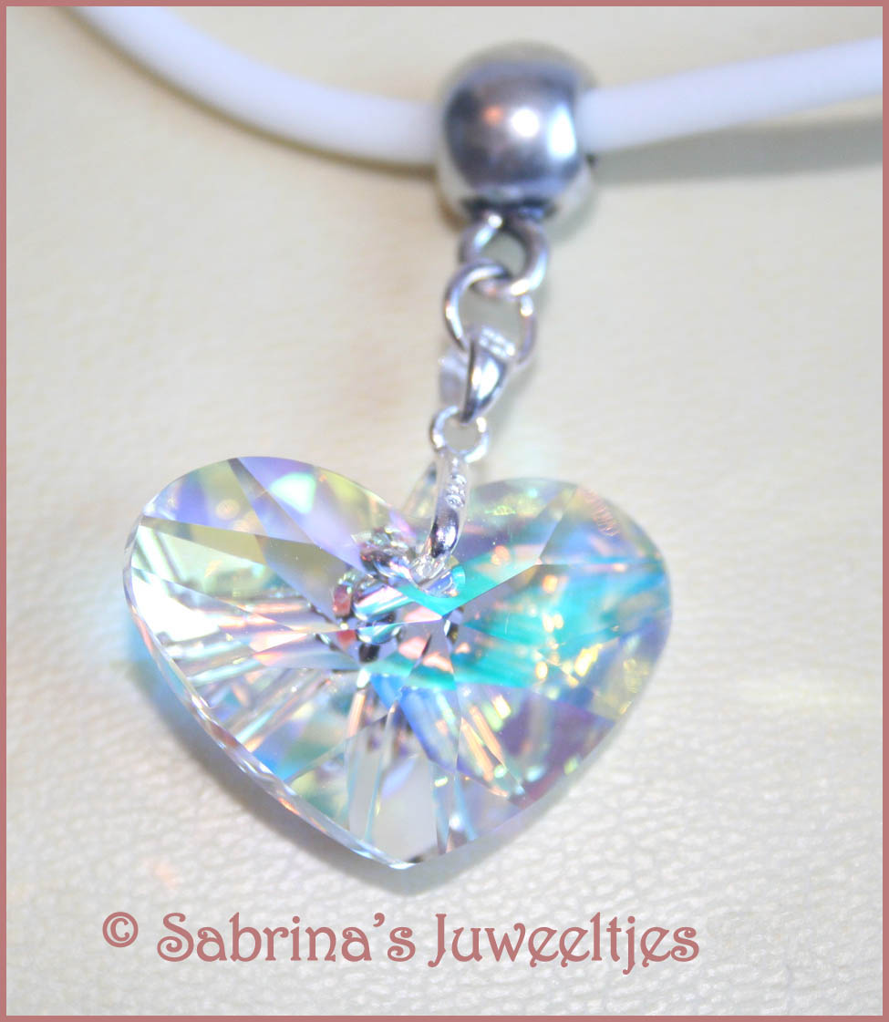 hangt een Swarovski bicone in de kleur Crystal AB.